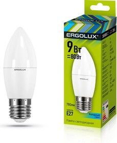 Cветодиодная лампа Ergolux LED C35-9W-E27/4500K.Свеча
