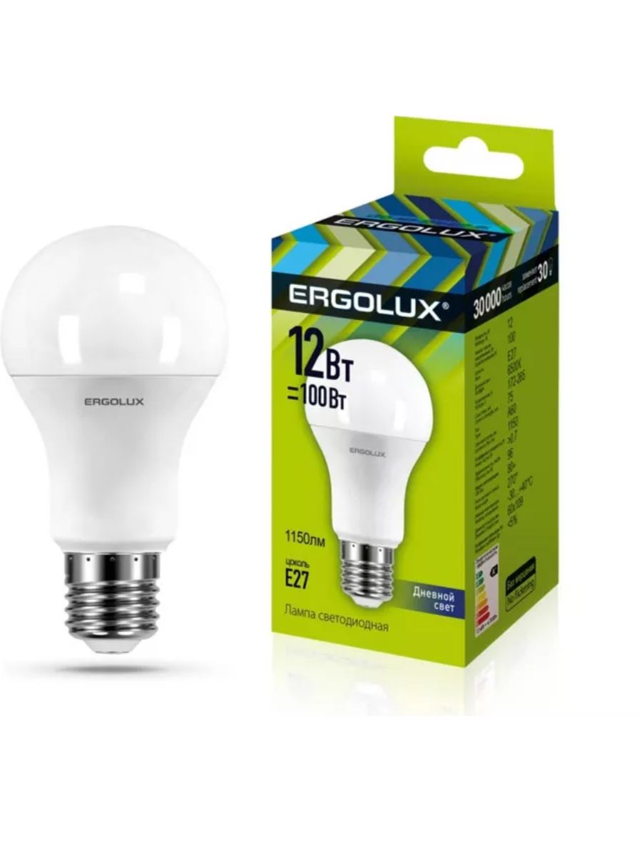Cветодиодная лампа Ergolux LED А60-12W-E27/6500K.
