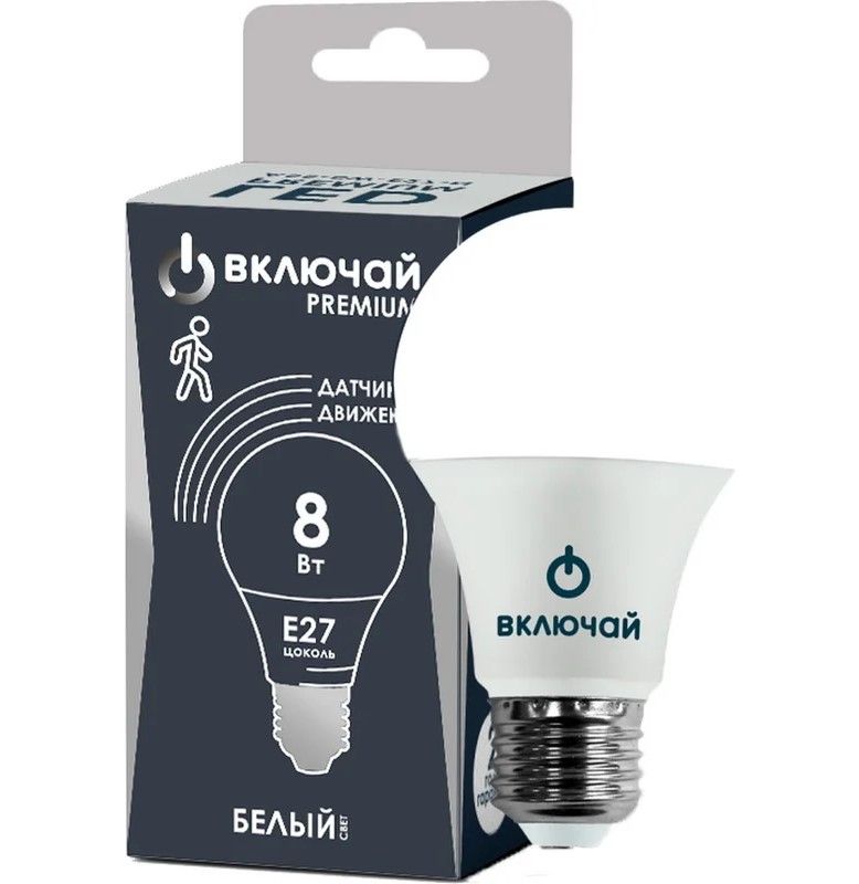 Cветодиодная лампа Включай LED А60-8W-E27/4000K.с датчиком
