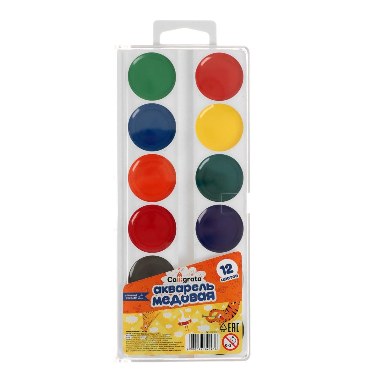 Читать все статьиАкварель 12 цветов Calligrata, медовая, без кисти, пластик, МИКС
