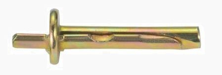 Сфера применения: Используется при монтаже подвесных потолков, систем вентиляции, металлических профилей и т.п. методом сквозного монтажа к бетону, камню, полнотелому кирпичу. Может применяться для монтажа противопожарных конструкций. Состоит из двух клиновидных элементов. При забивании происходит расклинивание в материале основания. Не подлежит демонтажу. Прочность анкерного соединения прямо пропорциональна прочности материала основания.