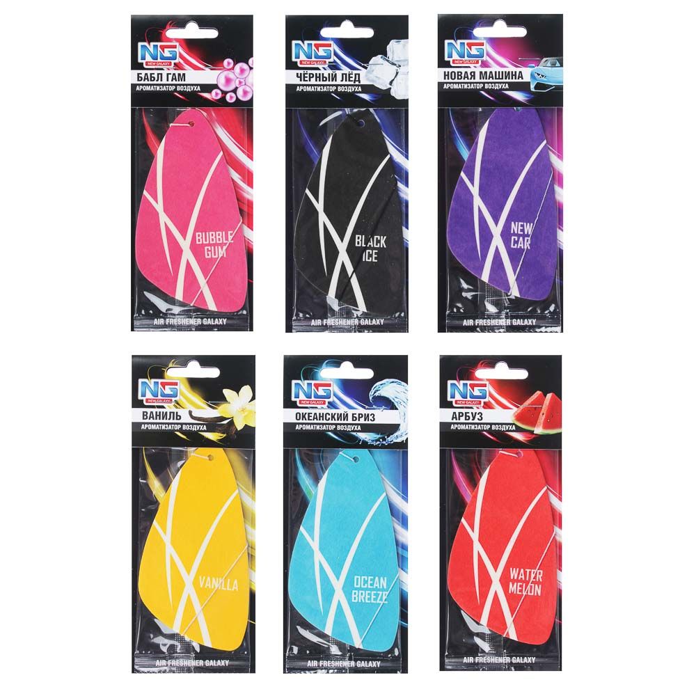 Автомобильный ароматизатор "Galaxy" с миксом ароматов выполнен из плотной бумаги и пропитан парфюмированым средством. В обиходе этот вид ароматизаторов еще называют "елочка". Такой освежитель воздуха может располагаться в любом месте машины и обеспечивать в салоне приятный аромат и нейтрализацию посторонних запахов на длительное время.