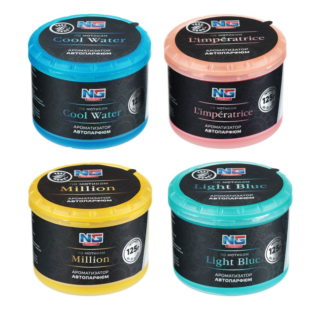 Автопарфюм от NEW GALAXY - это ароматизатор для автомобилей. Упакован в круглую пластиковую баночку. Ароматизатор ставят в подстаканник или другое удобное место. Гелевый - не проливается. Ароматы по мотивам Million, Light Blue, L`imperatrice, Cool Water