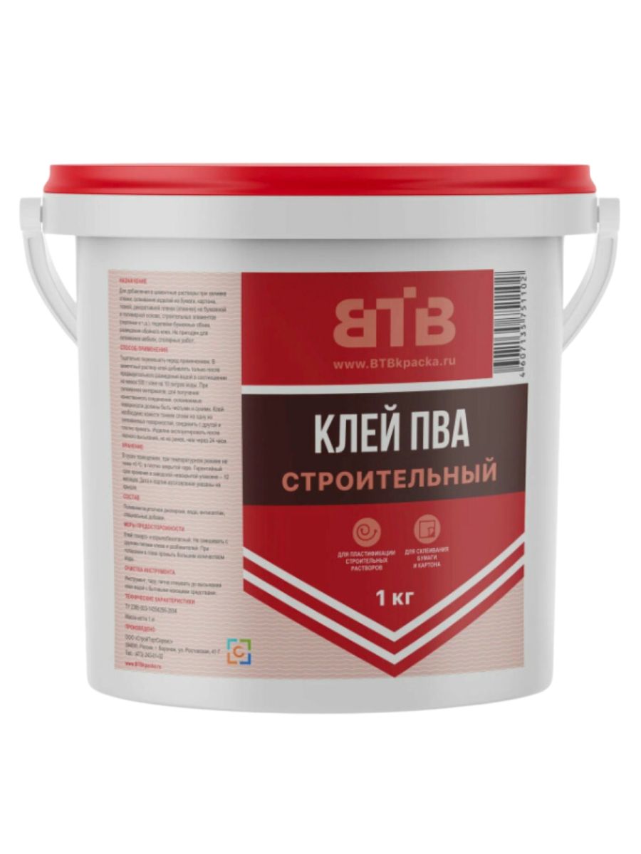 Читать все статьиКлей ПВА строительный 1кг ВТВ /12/ вед.