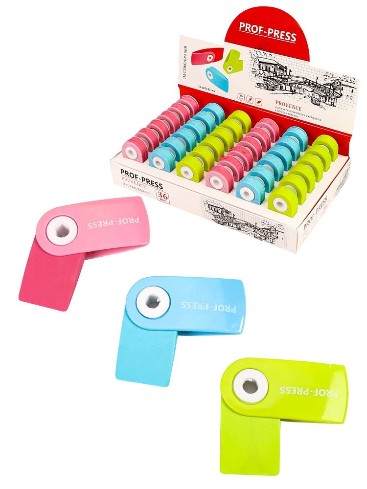 Цветной ластик эргономичной формы из термопластичной резины, Размер: 40х15х15 мм.Пастельные тона в асс.Ластик выдвижной в пластиковом футляре. Удаляет надписи от чернографитного карандаша. Ластик от компании "Проф-Пресс" обеспечит лёгкое и чистое стирание! Размер: 40х15х15 мм.