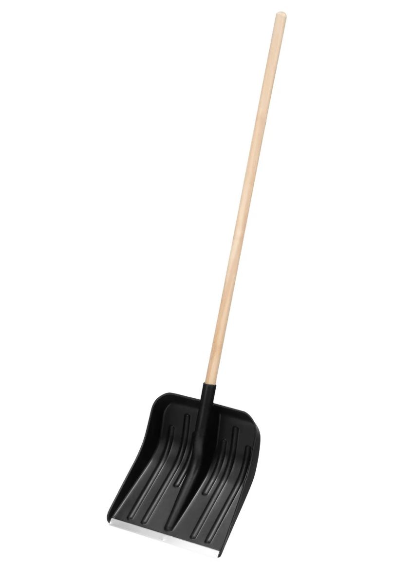Лопата снеговая, пластиковая, 360х405х1550,с накладкой,дерев. черенком