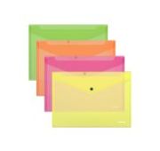 Папка-конверт на кнопке пластиковая ErichKrause® Fizzy Neon, A4, полупрозрачный