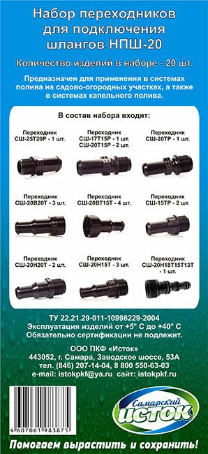 Набор переходников для подключения шлангов НПШ-20 - предназначен для применения в системах полива на садово-огородных участках, а также в системах капельного полива.