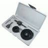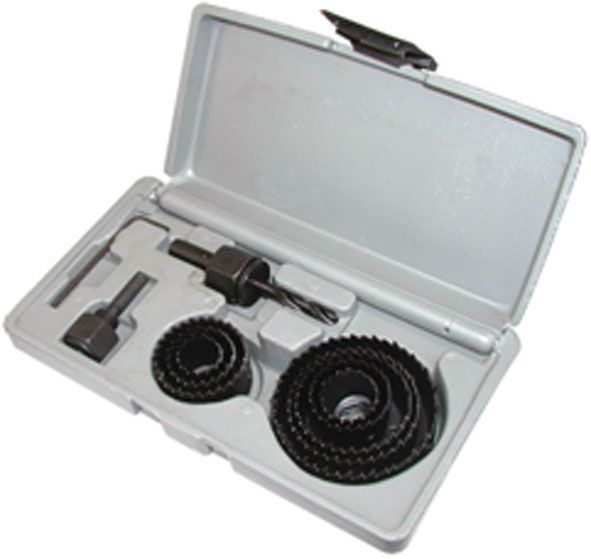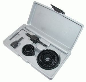 В набор входит сверло центрирующее, державка и кольцевые пилы. Выполнен из высококачественной инструментальной стали. Размер пил - 18 мм, 22 мм, 29 мм, 35 мм, 38 мм, 44 мм, 51 мм, 64 мм.
