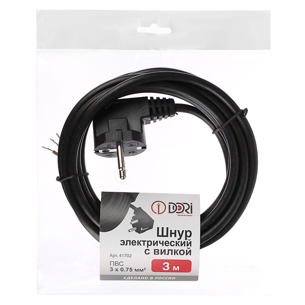 Читать все статьиШнур ПВС 3х0,75 с вилкой черный 3 м,DORI