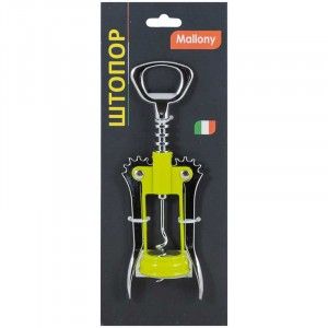 Штопор серии FRESCO Размер: 17*6*3,7 см Вес: 115 грамм цвета в ассортименте: синий/зеленый. материал: сплав цинка - хромированный, в центре - сплав цинка - окрашенный Упаковка - цветная картонная подложка с подвесом, полиэтил пакет. Не рекомендуется мыть в посудомоечной машине.
