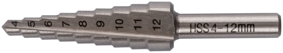 Читать все статьиСверло ступенчатое HSS по металлу 4-12мм, 9 ступеней