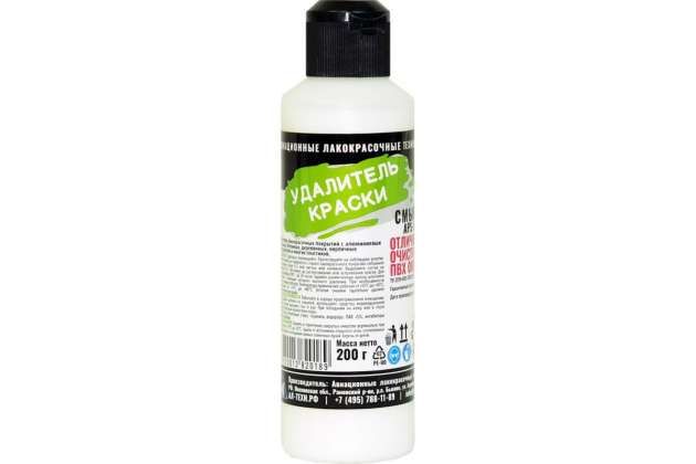 Удалитель краски APS-Eco смывка п/э флакон 200 г 000000203 эффективно удаляет алкидные, нитроцеллюлозные, акриловые, эпоксидные, полиуретановые, порошковые лакокрасочные покрытия с алюминиевых, стальных, бетонных, кирпичных, деревянных поверхностей, а также со многих пластиков. Не содержит ни сильных кислот, ни оснований, долго не высыхает и имеет слабый сладковатый запах. Возможно длительное время экспозиции состава на обрабатываемой поверхности. Отлично очищает ПВХ окна.