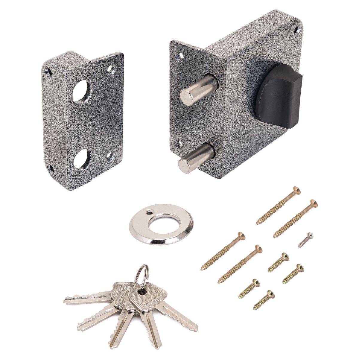 Описание товара: Замок накладной цилиндровый с вертушкой. П Два засова круглого сечения d=13мм с максимальным вылетом 28 мм. Удаление ключевого отверстия - 60 мм. Габариты замка - 100х110х55 мм. Комплектация - 5 ключей, запорная планка, накладка. Механизм замка под англ.ключ, идет совместно с корпусом. Закрывание и открывание замка изнутри производится вертушкой, снаружи ключом. Совместим по посадочным размерам с замками ЗН1-3-2Fort, ЗН1-3-3Fort+ Петрозаводск.